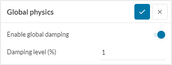 Under the Global physics settings, the user can enable global damping as shown in Figure 2. This allows assigning a Damping level in a percentage of the critical damping and will be applied to all parts without a material-specific damping setting.