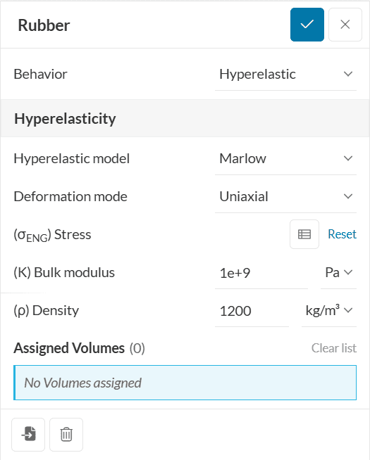 Unlike the previously discussed models, the Marlow model does not require parameter calibration. Instead, it can be defined simply by providing an engineering stress-strain curve such as from uniaxial tension, biaxial tension, or planar shear tests.