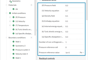 Under Numerics you can set the equation solver for your simulation, change the convergence settings, select algorithms…
