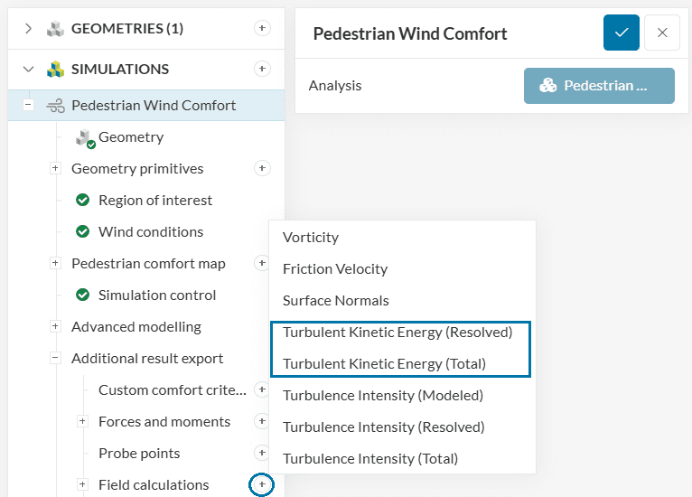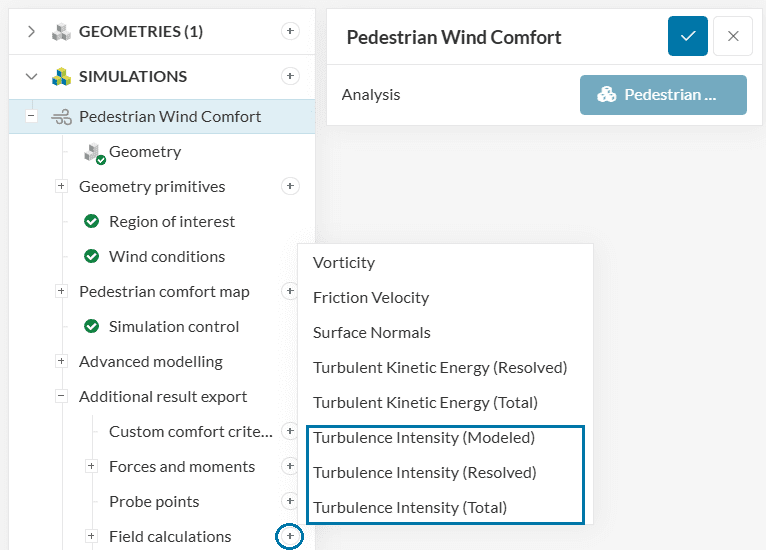 Under Field calculations, the user can define a series of additional outputs for their simulations, including total pressure, vorticity, amongst others.