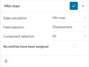 Min/Max: Minimum and maximum values for the specified field are computed over all the mesh nodes belonging to the assigned geometry, e.g., all nodes belonging to a particular face. If the field contains multiple components, such as vector or tensor quantities, select the ‘All’ components option to obtain the minimum and maximum values for each individual component.