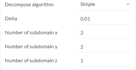 The algorithm to decompose your simulation domain can be specified here. Three algorithms are available viz. Scotch, Hierarchical, and Simple.