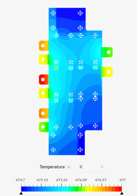 Excessive temperature increases can degrade materials, compromise electrical connections, and elevate the risk of failure. Engineers can evaluate how different load conditions, ambient temperatures, and installation configurations affect the busbar’s temperature through simulation.