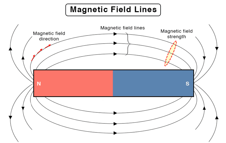 Magnetic field lines possess distinct properties that aid in understanding the behavior of magnetic fields \(B\). These lines form closed and continuous curves, meaning they create a loop without any breaks. The density of the magnetic field lines indicates the strength of the magnetic field. When the lines are crowded or closely spaced, it signifies a strong magnetic field. Conversely, as the distance from the object increases, the density of the lines decreases, reflecting a weaker magnetic field.