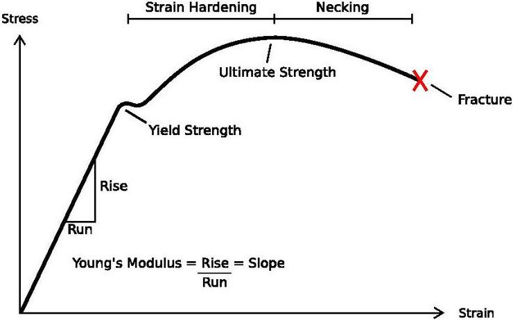 where \(\sigma\) is the stress, \(E\) is the modulus of elasticity (or Young’s Modulus), and \(\epsilon\) is the strain.
