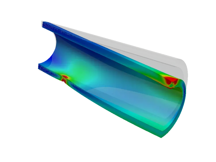 For instance, here is a step-by-step tutorial for how you can simulate the bending of an aluminum pipe using nonlinear static simulation. This tutorial describes how you can analyze the deformation and stress distribution developed on the pipe during the bending process, including nonlinear phenomena such as material plasticity, physical contact, and large deformation.