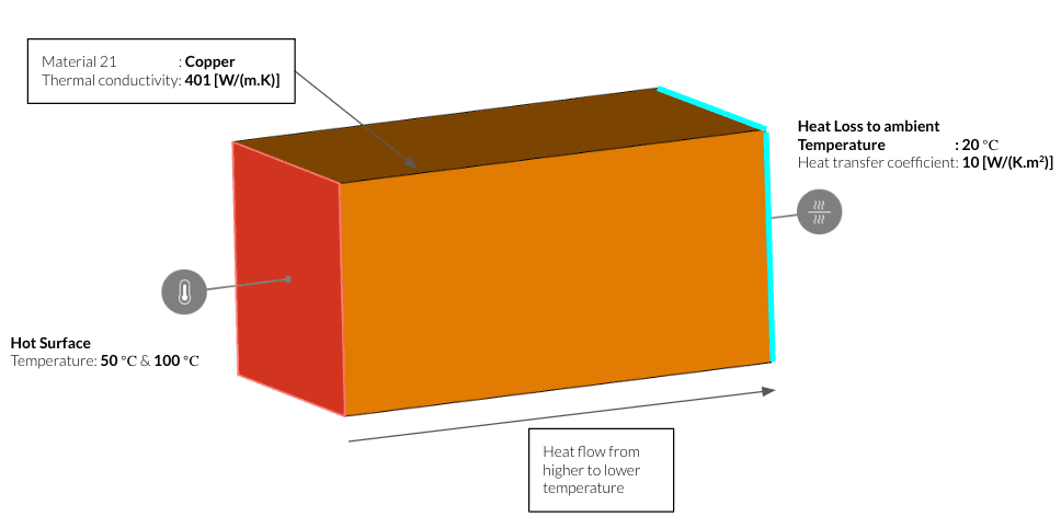 To understand this behaviour, we can simulate two different temperature gradients easily using SimScale’s Heat Transfer analysis. Let’s consider a solid material with a hot and cold side.