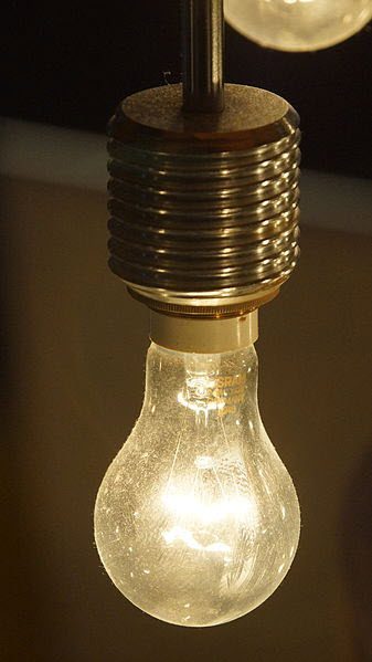 Incandescent light bulbs, where a filament is heated with electricity and light is emitted.