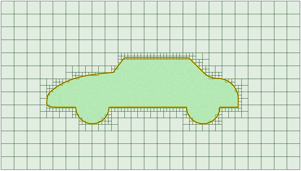 Before removing the mesh cells inside the body, this base mesh is then refined based on the specified edge and surface refinements and then split in the vicinity of the body surfaces.