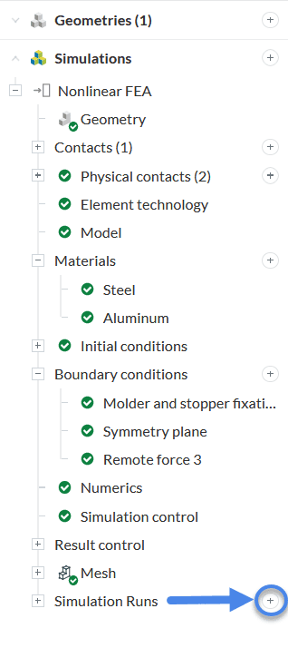 Create a new computation run by clicking on the ‘+‘ icon next to the Simulation Runs on the tree, as shown below:
