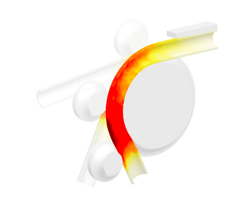 In this tutorial, we will simulate the forming process of an aluminium pipe via a hydraulic bending machine and analyze the mechanical stress and strain induced in the part(s). The following picture illustrates the parts of the model and the process: