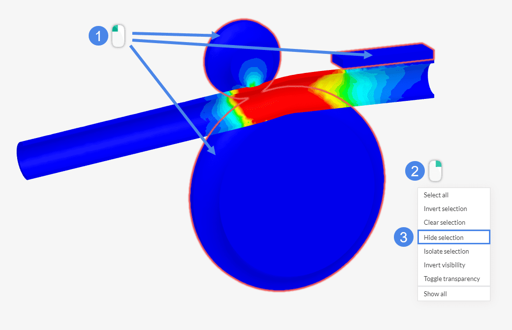 In order to better visualize the stress on the bent pipe, we want to hide all other parts. To do so, we follow this procedure:
