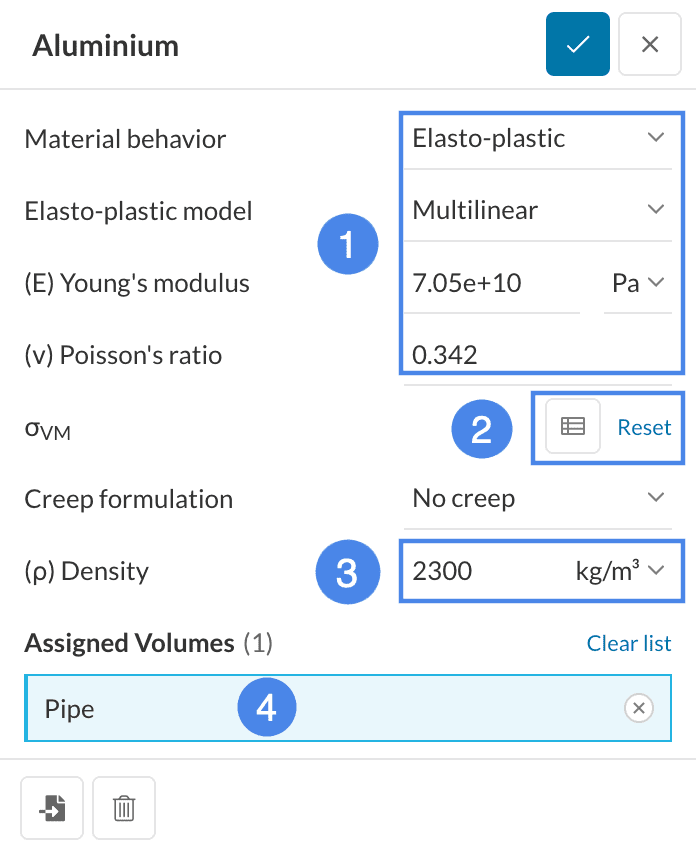 For the pipe, first create an Aluminium material, with the same procedure used for steel. Notice that the pipe body is automatically selected, as it is the only one left without a material assignment.
