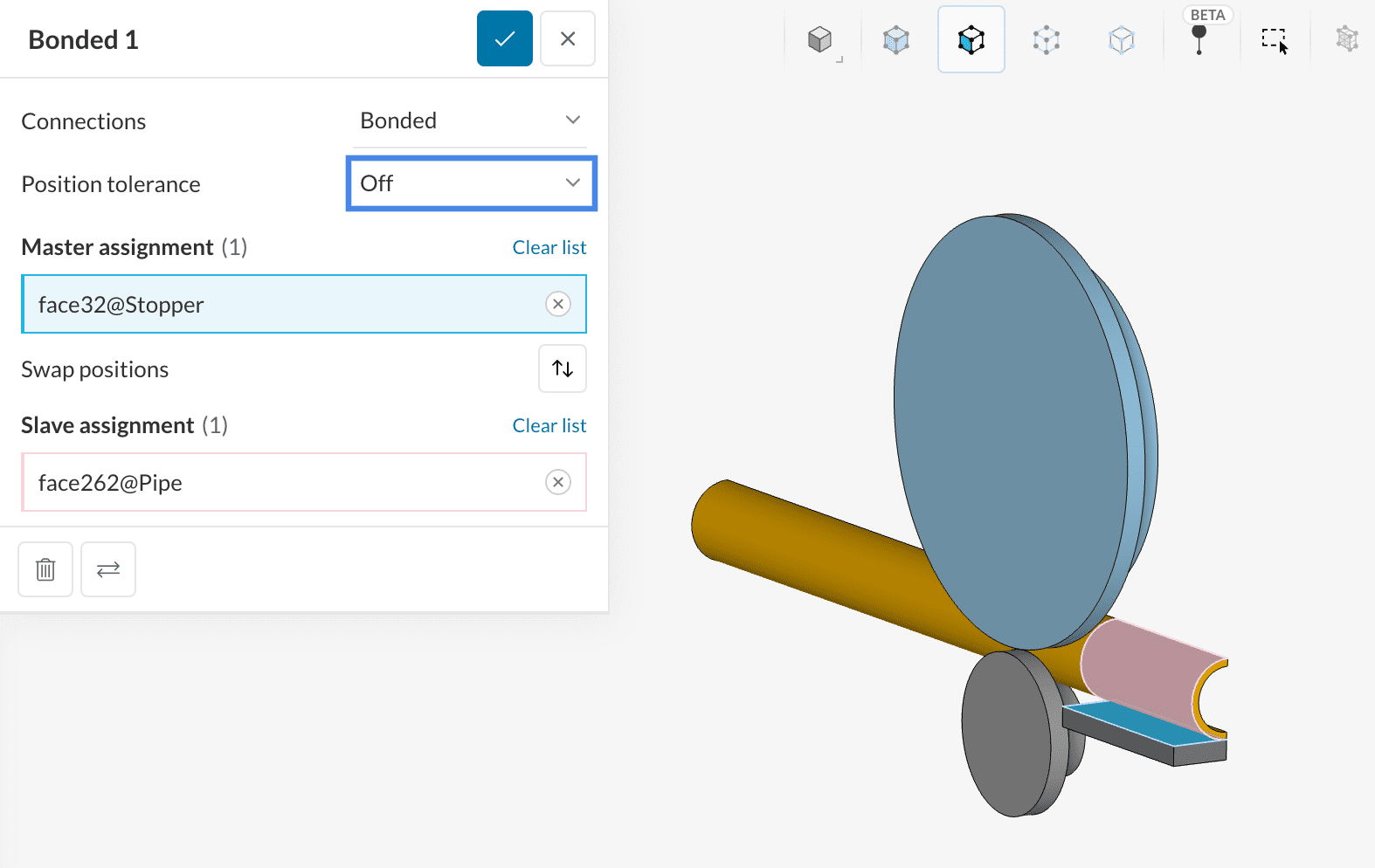 As our model needs a bonded contact between the pipe and the stopper, we are going to manually add it: