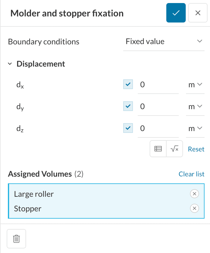 We need to assign it to the Large roller and Stopper bodies. Both of them have to be prevented from any movement, as presented in Figure 6.