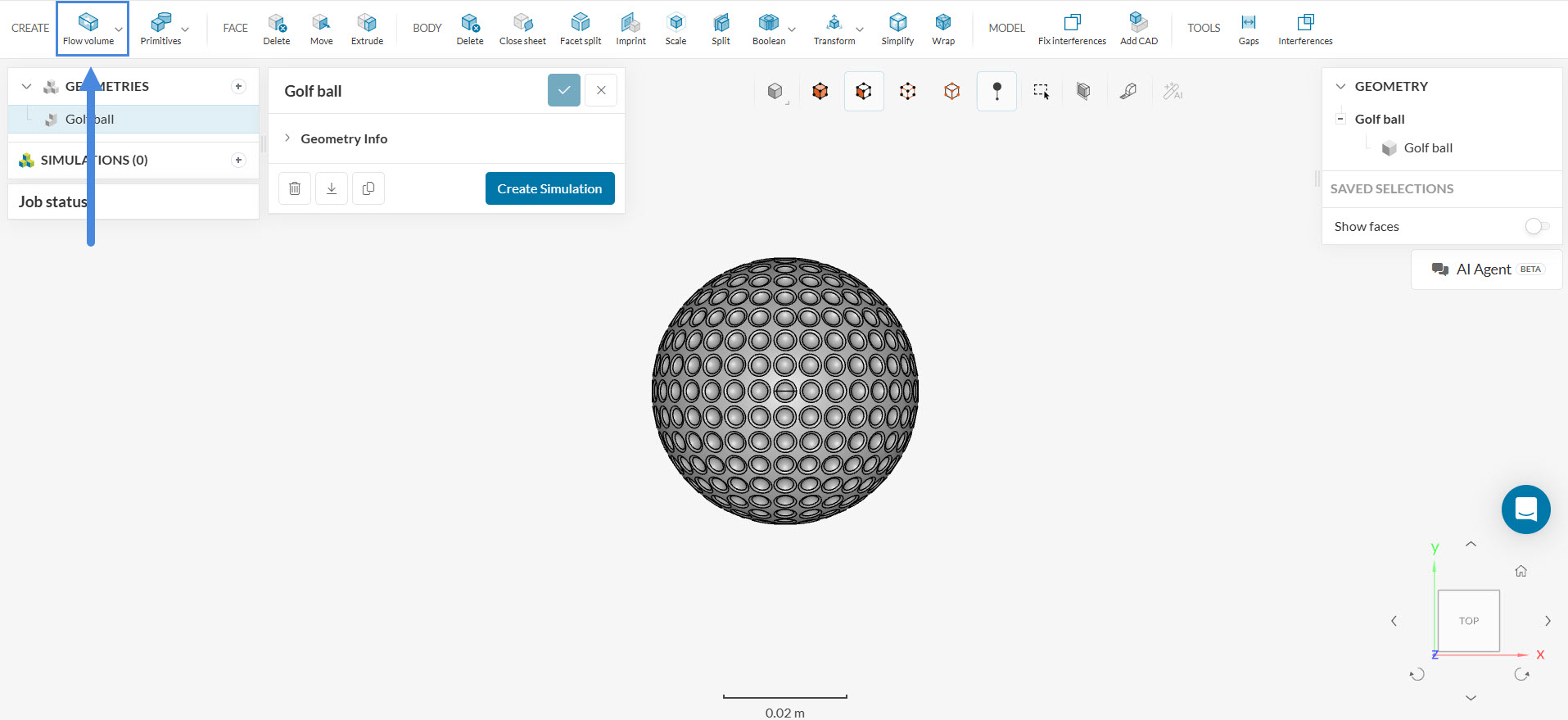 The first step for this simulation is the creation of a flow region volume. This will be the domain used for the external CFD analysis. To perform the necessary operations, simply select the geometry from the list—the available CAD operations will then appear in the top toolbar. You can either work directly on the original model or create a duplicate and apply your changes to the copy.