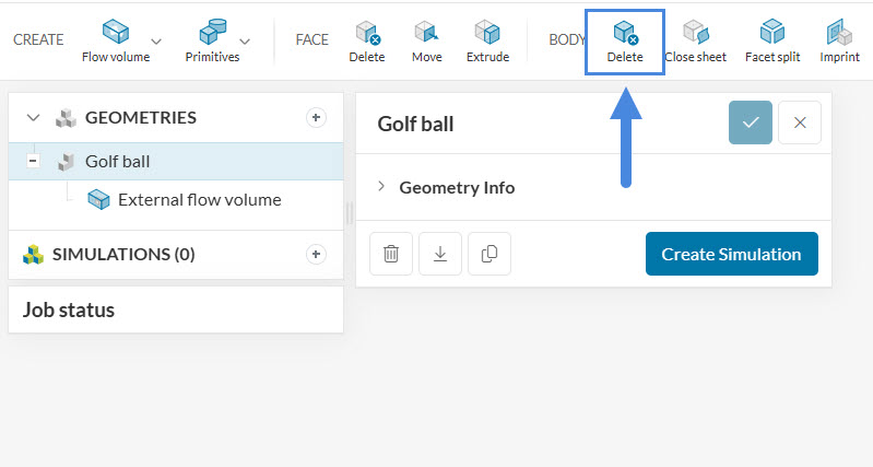 After you are done, click ‘Apply‘. Then select the ‘Delete’ feature below the Body section, to remove the solid part representing the ball:
