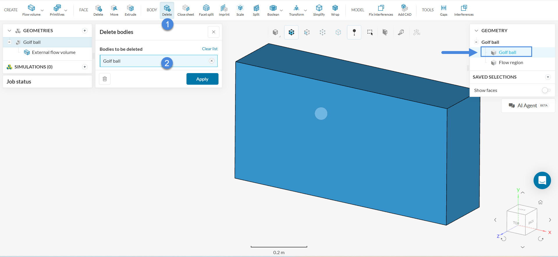 Select the solid body from the scene tree on the right and click ‘Apply’: