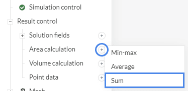 Let’s create one such item as shown by using the ‘+’ icon next to Area calculation, under Result control, then selecting a ‘Sum’ item from the list: