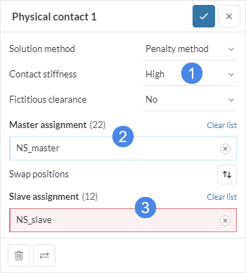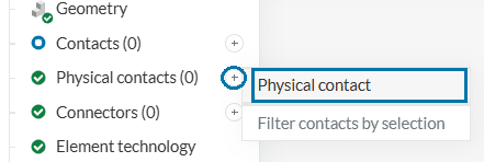 First, let’s create the physical contact. This will enable the mechanical interaction between the two parts, so the collisions and the snap fits are properly captured. To create a new physical contact definition, click the ‘+’ button next to Physical contacts (0), and select ‘Physical contact’ from the list.