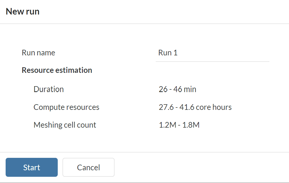 In the pop-up window, you might receive a couple of yellow warnings. We can safely ignore them and click ‘Run anyway’, then ‘Start’ on the New run window. The computation is launched and an email notification will be sent when it finishes.
