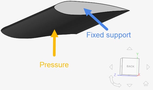 We will assign a pressure load at different eigenfrequencies based on the results of the frequency analysis tutorial as well as fixed support. Furthermore, we are going to use aluminum as a material for the wing.