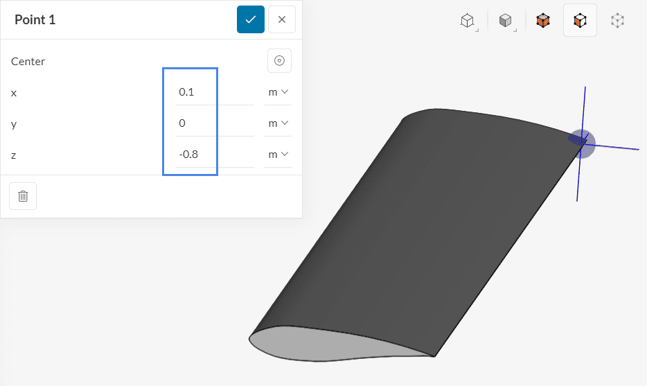 For the coordinates, specify ‘0.1‘ in the x-direction, ‘0‘ in the y-direction, and ‘-0.8‘ in the z-direction: