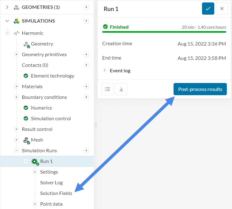 To view the results of your harmonic analysis, click on the ‘Post-process results‘ tab under your finished run.