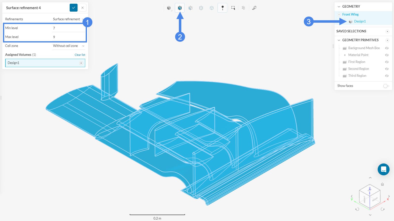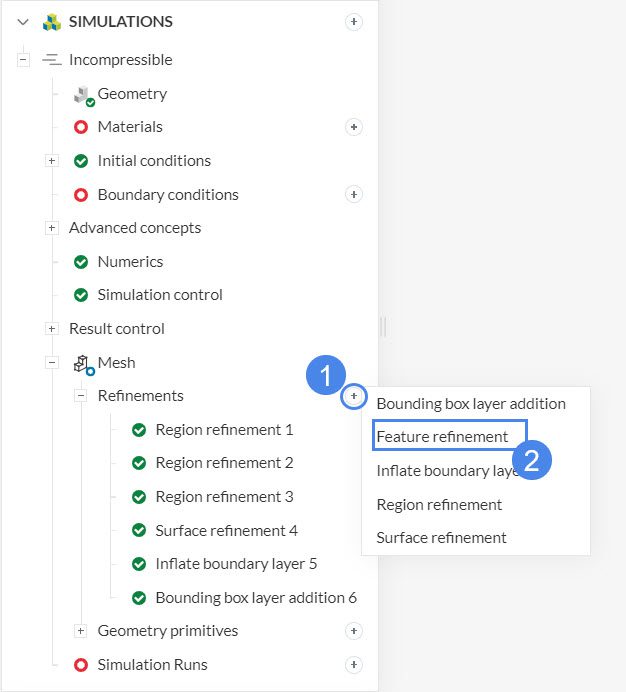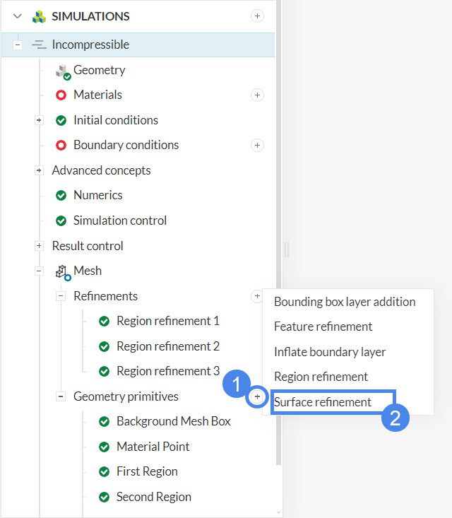 Add a surface refinement by clicking on the ‘+’ icon next to the Refinements, and then choosing the ‘Surface Refinement’ option.