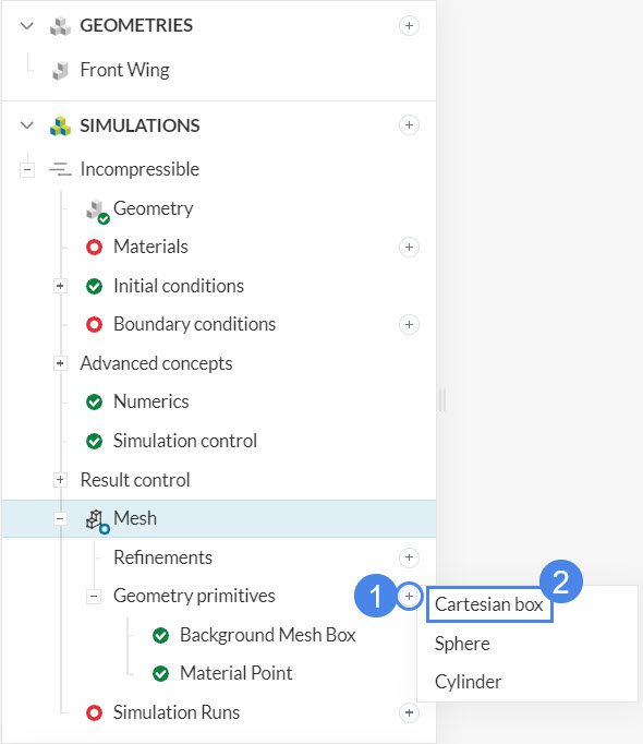 Click on ‘+‘ next to the Geometry primitives, and choose the ‘Cartesian Box’ option like below: