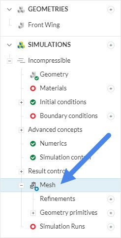 The Hex Dominant parametric mesh does not take into consideration the physics of the simulation while being generated, so it can be set and created before the rest of the simulation settings are applied. Just click on the ‘Mesh’ option in the simulation tree.