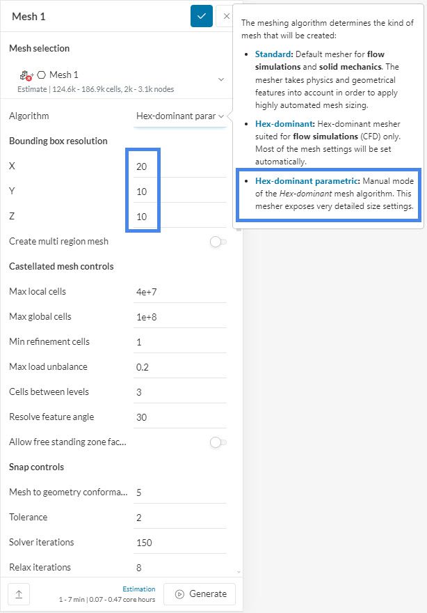 If you want to learn more about the Hex-dominant parametric algorithm, take a look at this document: Main Settings for Hex-dominant parametric.