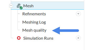 You can check the quality of your mesh and improve it by clicking on the ‘Mesh Quality‘ on the simulation tree. Use this article to help you examine the characteristics of your mesh.