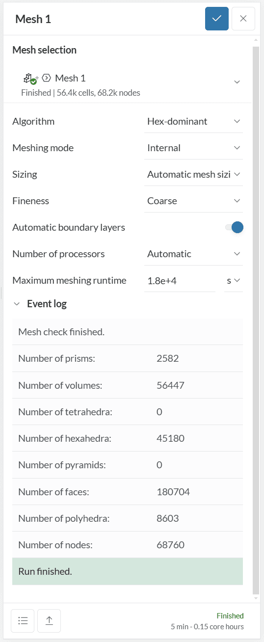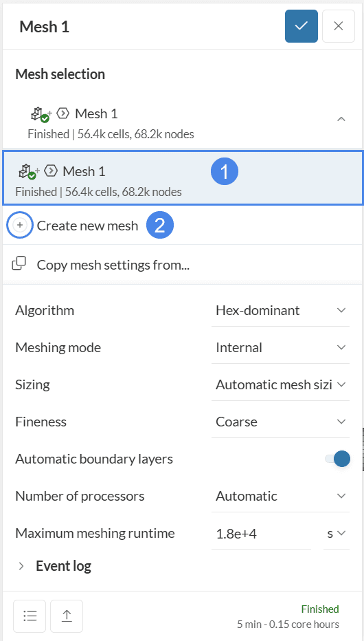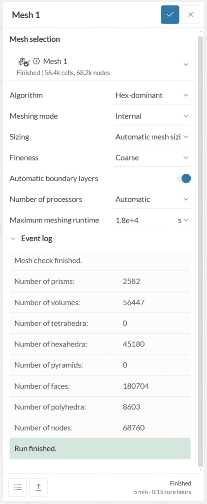 After a couple of minutes, the mesh will be generated. You can see more information about the mesh by clicking on the ‘Event Log‘:
