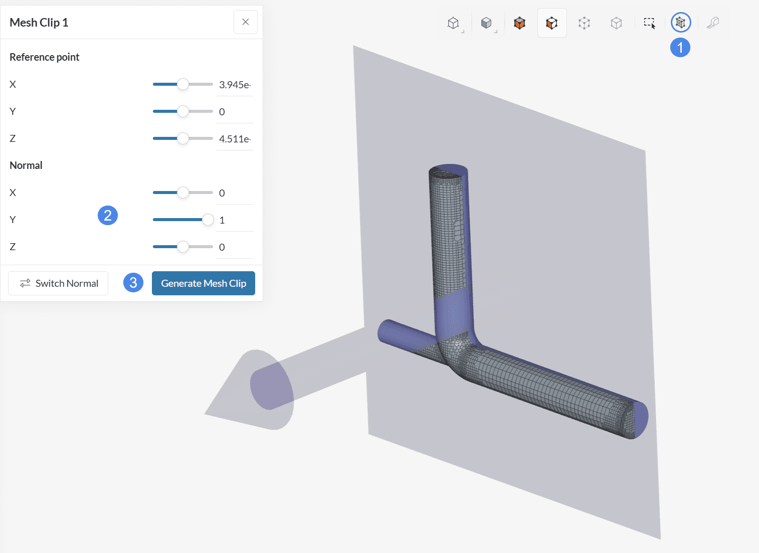 Click on the ‘Mesh clip‘ to inspect the internal mesh. Adjust the settings of the normal. Click on the ‘Generate Mesh Clip‘ icon.
