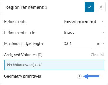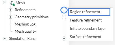 Click on the ‘+’ button next to Refinements and select ‘Region refinement’. This opens the settings panel.