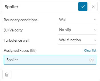 For the floor below the spoiler, a moving wall boundary condition will be used. Create another ‘Wall’ boundary condition, and assign the ‘Floor’ entity set to it: