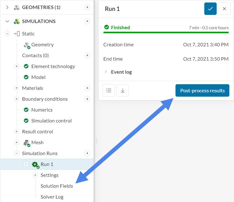 1. Click on ‘Solution fields’ under the simulation run, or