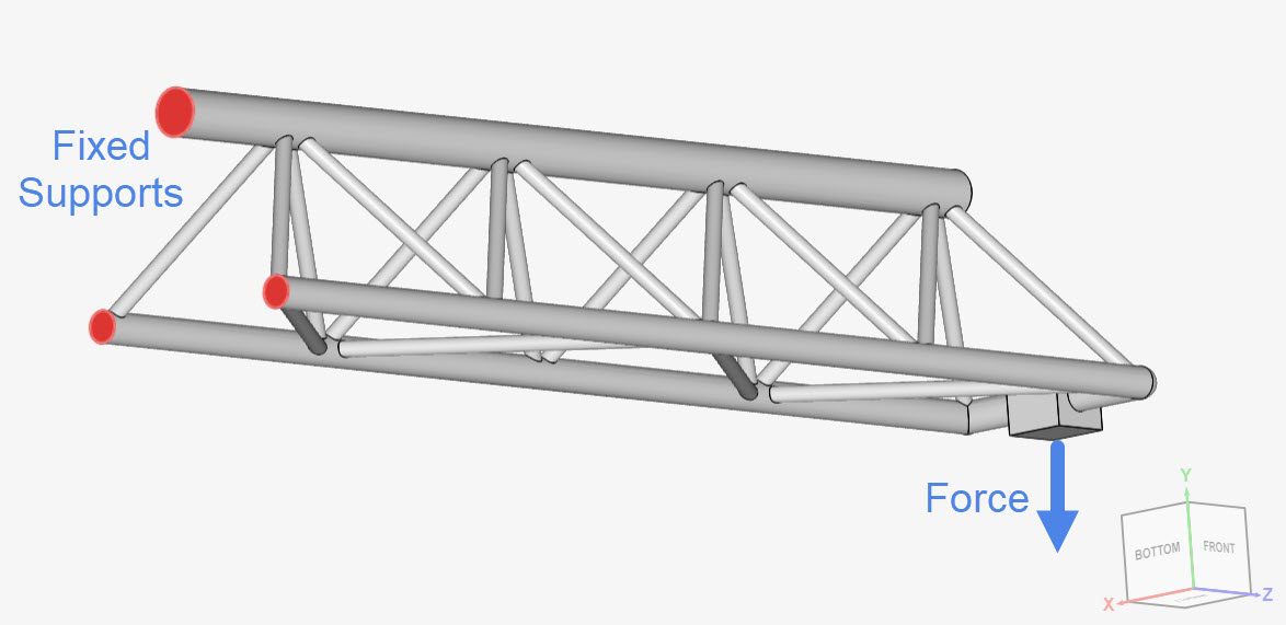 Boundary conditions play a key role in simulations – They define the physical conditions that you want to analyze in your design. In this simulation, we will apply fixed support and force boundary conditions. The image below provides an overview of the physics: