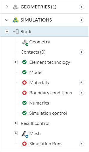 simulation tree of a linear static simulation in simscale