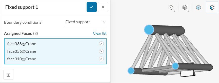 After that, a dialog box of the fixed support boundary condition will show up. Here, you will only need to assign the fixed support faces.