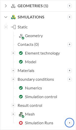 You can start a simulation run by clicking on the ‘+ button’ next to Simulation runs.