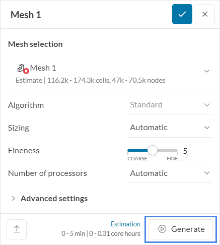• Mesh with the SimScale standard meshing algorithm.