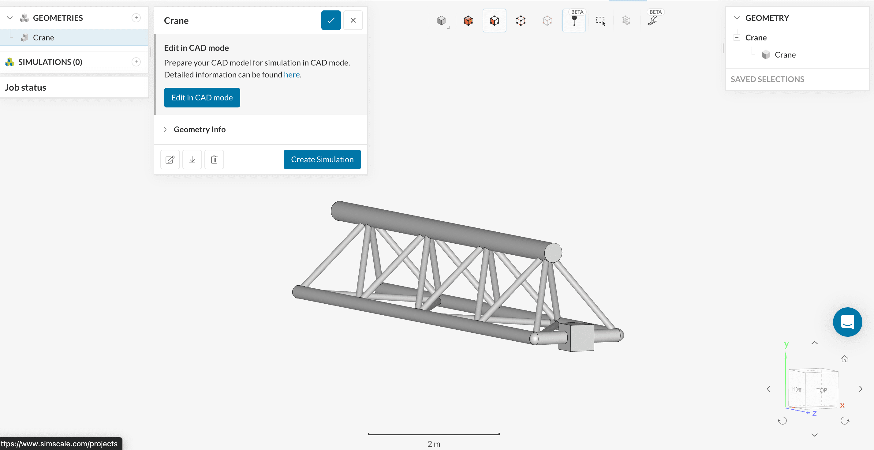 geometry dialog box showing how to create a new simulation run in simscale
