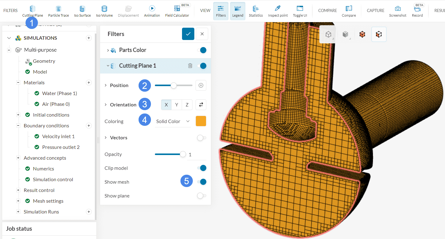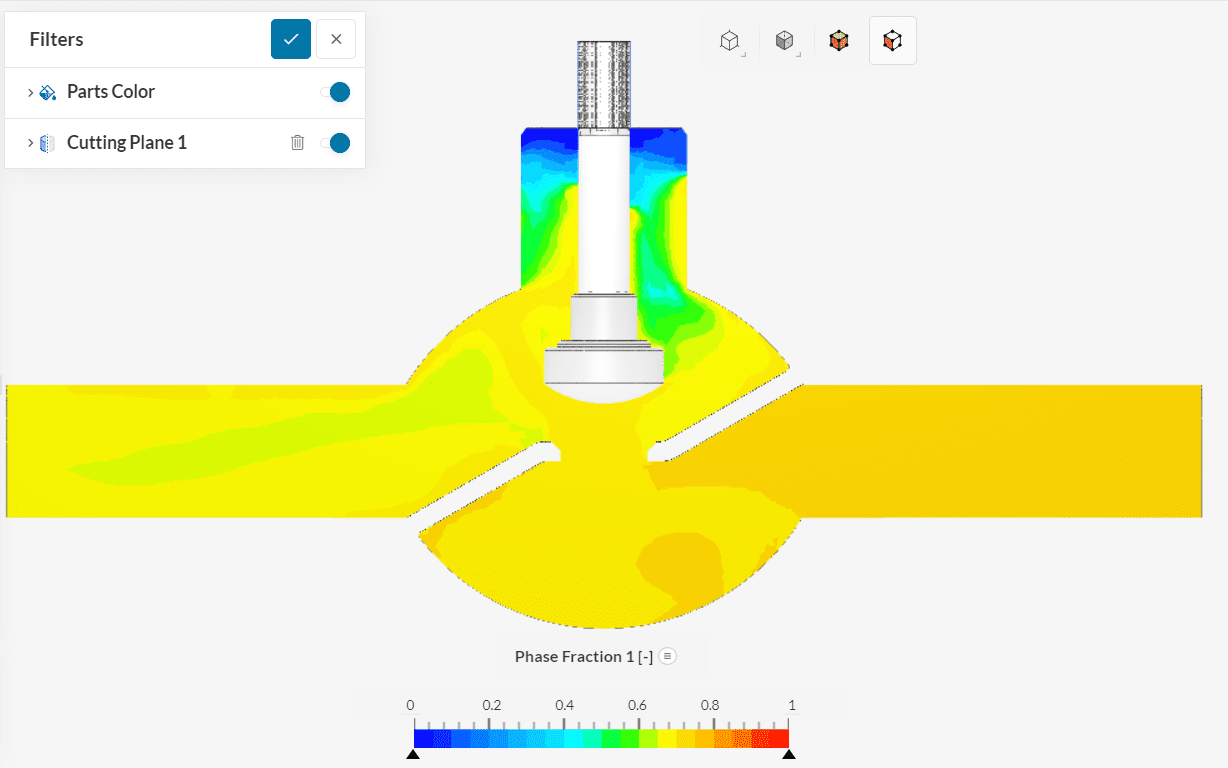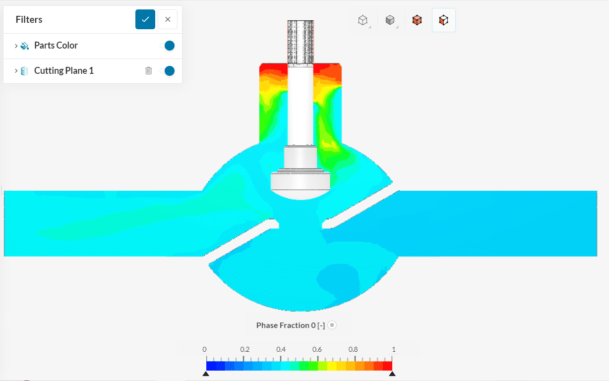 To get more details on the flow behavior inside the valve, use the Cutting plane filter.