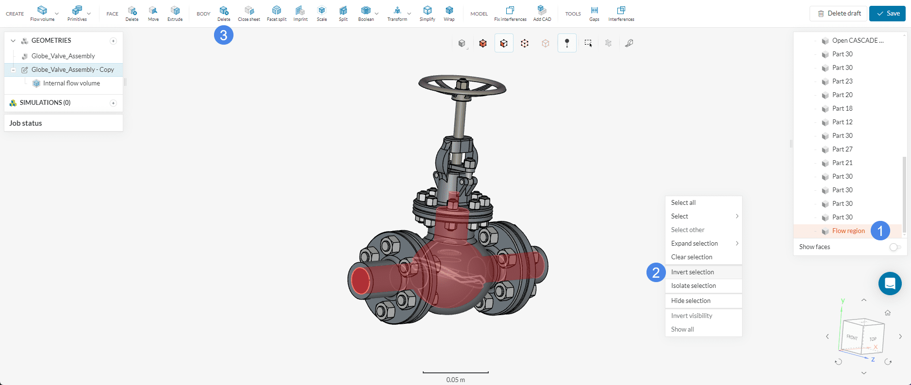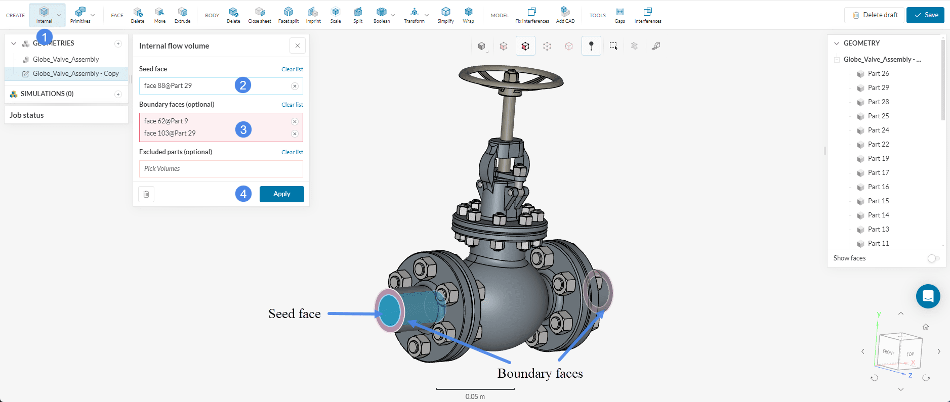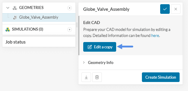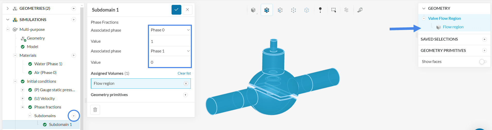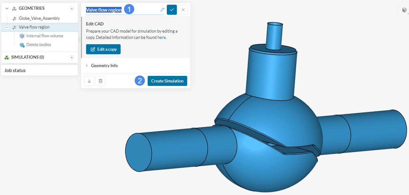 Rename the new geometry to ‘Valve flow region’ and hit the ‘Create Simulation’ button.