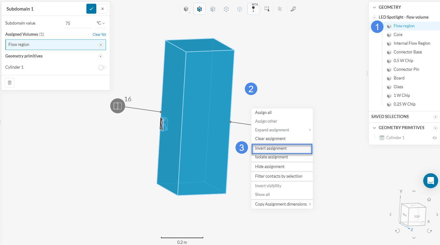 We want to assign all the LED parts to this subdomain. The quickest way to do that is by using an Invert visible assignment function. Please proceed as below:
