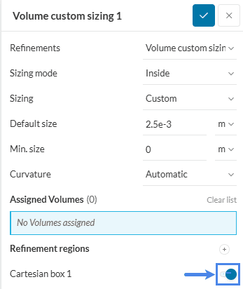 As a final step, return to the Volume custom sizing previously created, and toggle on the cartesian box assignment.