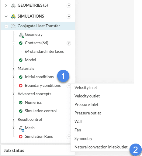 To create a new boundary condition, click on the ‘+ button’ next to Boundary conditions, and select the desired type from the drop-down menu.