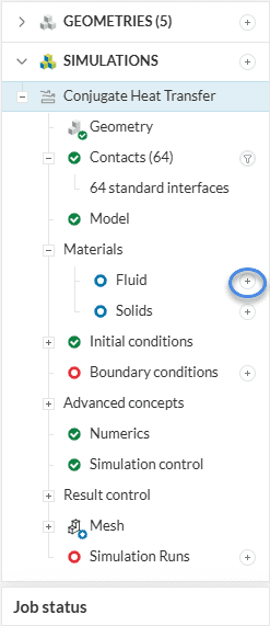 To add a fluid material, please click on the ‘+ button’ next to Fluid: